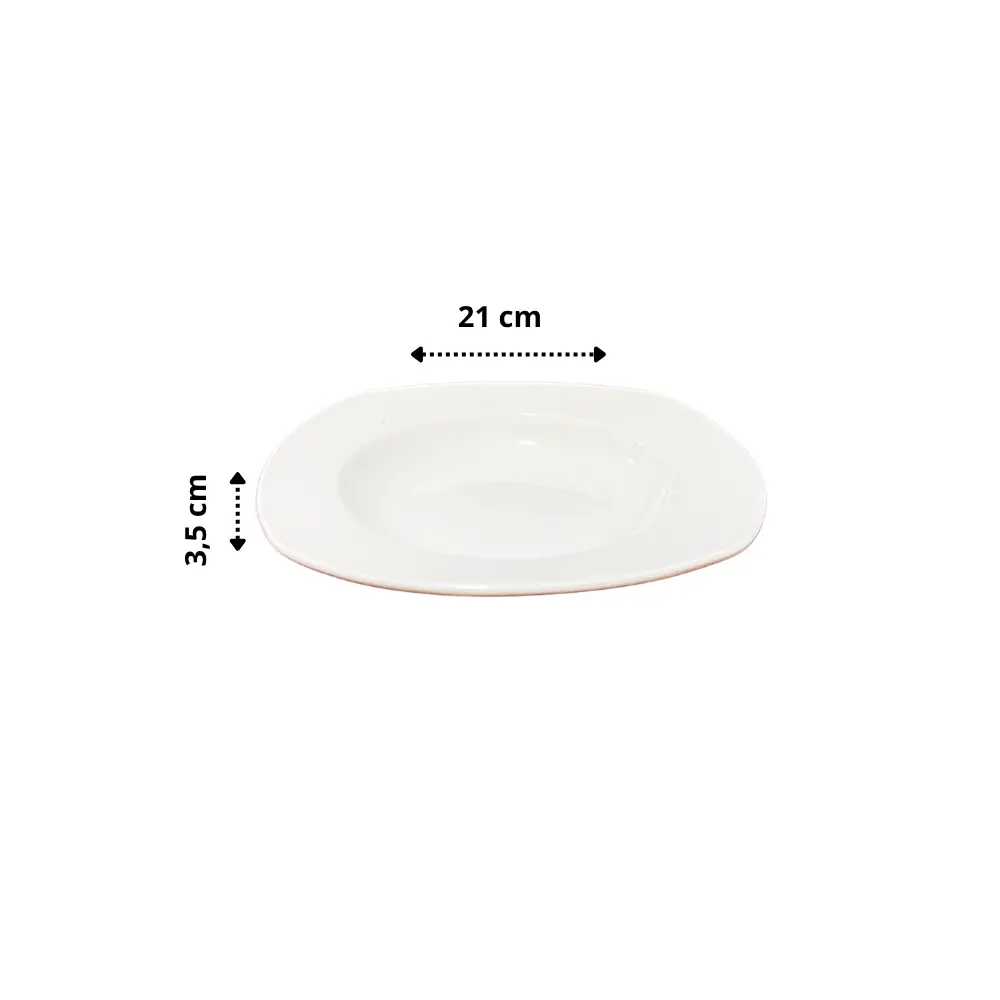 Nuestro Plato Bajo Hondo de loza blanca es la elección perfecta para presentar sopas, pastas y comidas líquidas con elegancia. Con un diámetro de 21 cm y una profundidad de 3,5 cm, su diseño combina estilo clásico y funcionalidad, ideal para matrimonios, banquetes y eventos corporativos.