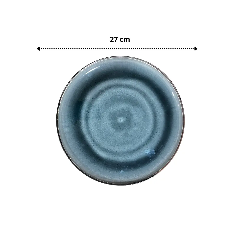 Plato Fondo Brisa Azul – 27cm : Este plato tiene un diseño elegante, con un esmalte en tonos azules que recuerdan a ondas en el agua o a un cielo profundo